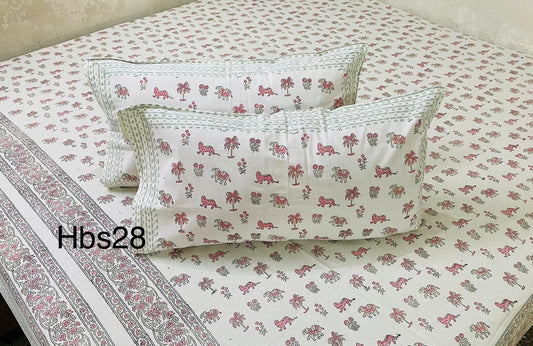 Handblock Pigment King Size Bedsheets || 2 Pillow Covers | HBS32